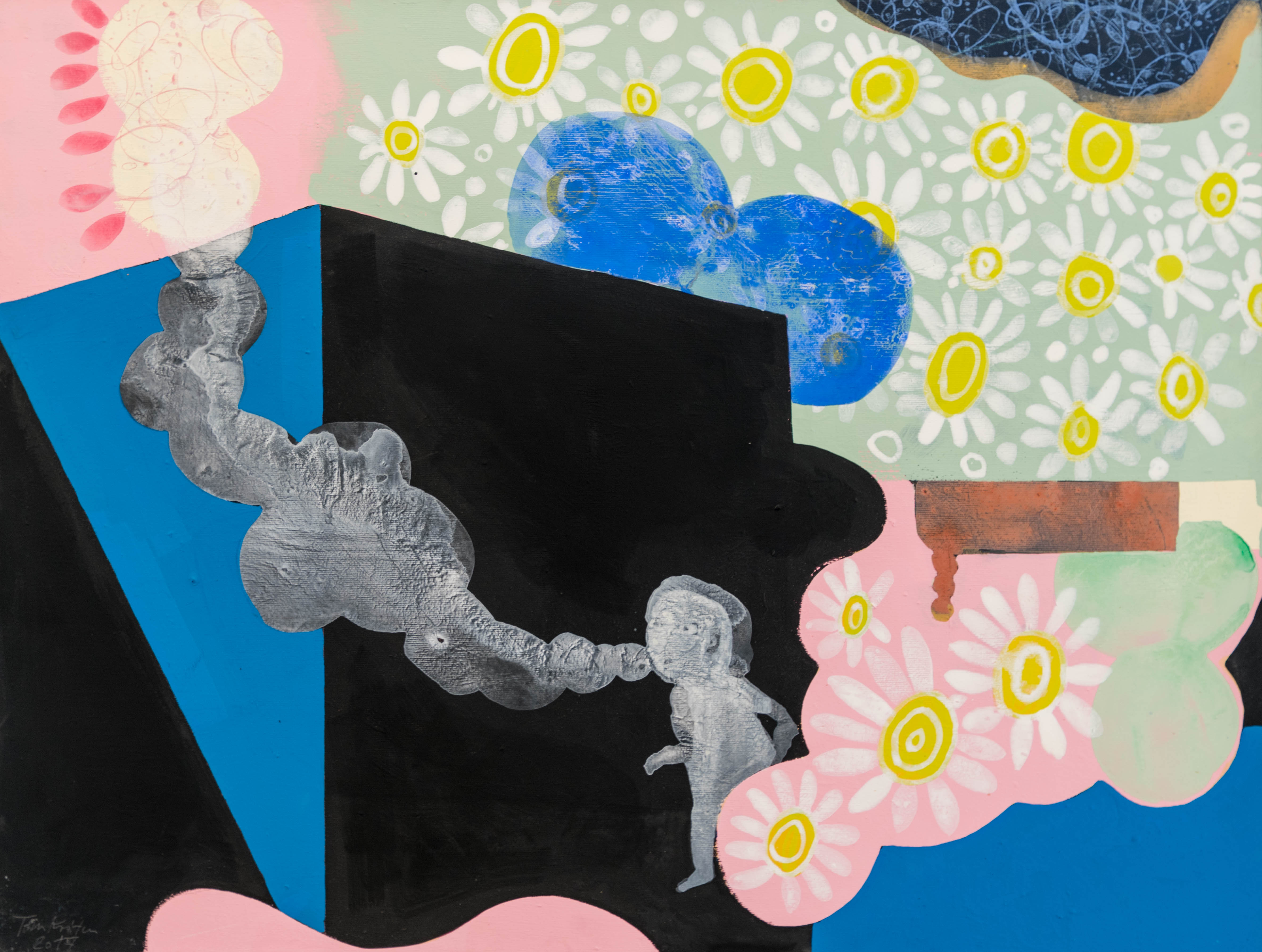 Immer wieder tauchen in Toms Kristens Malerei Berge, Tische, Blumentöpfe und Wolken auf, reduziert in der Form, archaisch in der Anmutung. Seine Motive schöpft er aus der Natur und seinem Lebensumfeld und ist dabei ein großer Geschichtenerzähler. Mal witzig, mal tragisch, immer mit viel Sinn für Komik. Damit macht uns Tom Kristen auch die Angst leichter erträglich, kommentiert so manches Mühen im Alltag mit einem Augenzwinkern und führt uns doch ein ums andere Mal die Schönheiten unseres Erdenlebens vor Augen.